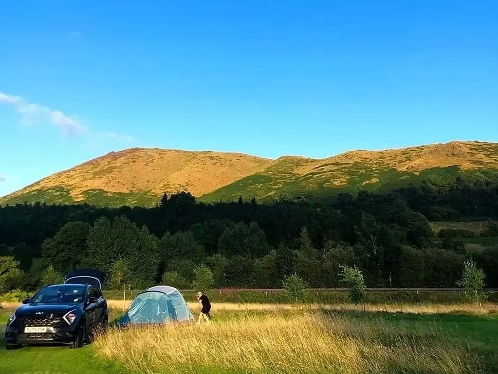 Enjoy the lovely setting of this romantic spot in nature.Stunning views of Caer Caradoc, less than five mins walk to pub, Walks, bike rides, foot paths straight from the site, Cafes, resturants, take aways, pubs, super market and train station in Church Stretton.Caer Caradoc bell tent is 6x4m. 9 feet high. It is fully equipped. The bell tent sleeps 4 comfortably. has 1 double bed made up and 2 single zeds.